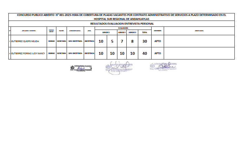 RESULTADO DE ENTREVISTA DE TECNICOS Y ADMINISTRATIVOS- CAS 001-2025 HSRA
